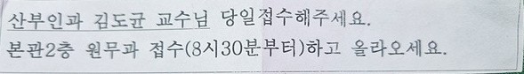 원무과 순번표를 뽑고 다시 산부인과로 와보니 6시 22분쯤 김도균 교수님과 간호사 선생님께서 출근을 하셨어요.