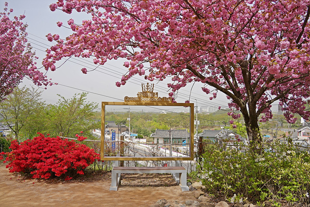 숲머리 뚝방길에는 일반 벚꽃 보다 조금 늦게 겹 벚꽃도 볼 수 있고, 포토존도 예쁘게 마련되어 있습니다.