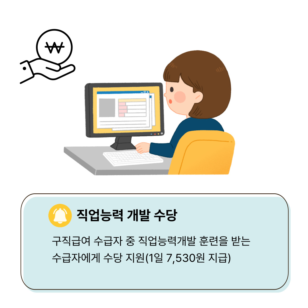 ☞ 실업 상태인 장애인 박○○씨는 실업 급여 및 직업 훈련 프로그램 등의 구직 관련 혜택을 알림 받았습니다.